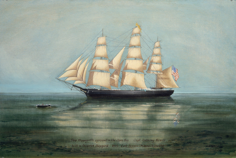 Grounded in the Java Sea, her damage being assessed by the crew in a longboat - she was found to be repairable. To this day, navigation charts list this rock as a monument to the Hippogriffe, a clipper ship from East Dennis.